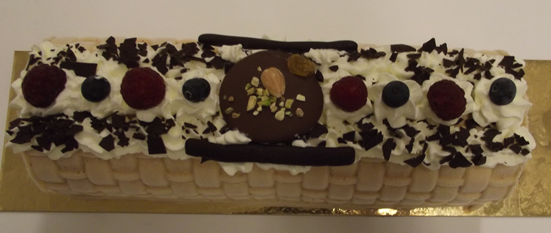 Chantilly, Décor de framboises, myrtilles, copeaux de chocolat