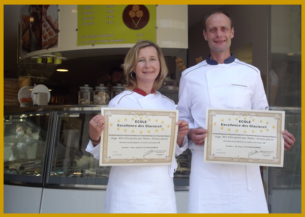 Les deux élèves avec leurs certificats de fin de stage BIO réussi en Excellence.