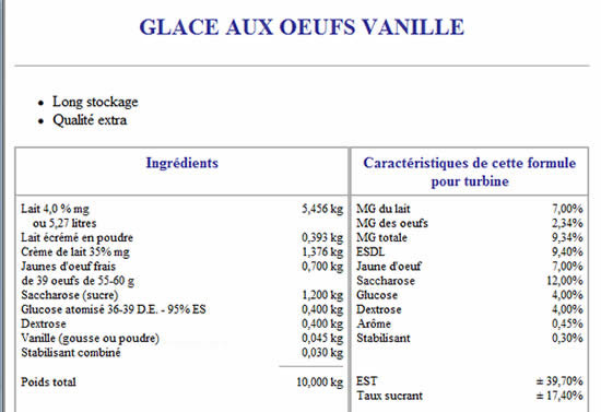 Exemple de recette créé par le logiciel au gramme prés en EXCELLENCE .