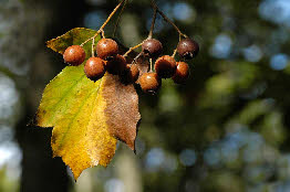 L’alisier torminal, que l’on rencontre ça et là dans les bois, à des fruits tout à fait comestibles .