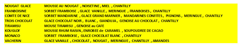 Mes desserts avec nougatines , mes fruits confits , mes chocolats , mes gaufres ,