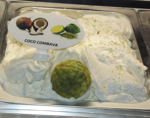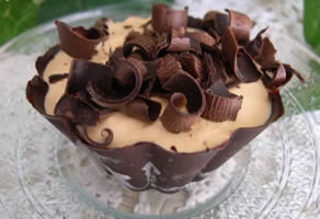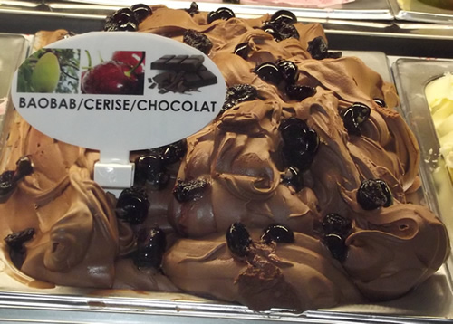 Exemple : Avec de la crème du fruit du BAOBAB et des morceaux de cocos caramélisés , des cerises et du chocolat noir ,